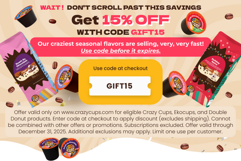 Subscribe to Crazy Cups between May 28, 2025 and June 30, 2025 to receive 20% off your recurring subscription orders on eligible Crazy Cups products, along with free standard shipping on orders of $35 or more (after discounts).